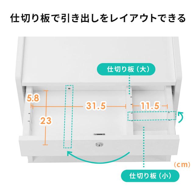 ●引き出しは鍵付きで文具収納のほか、貴重品の収納もできます。