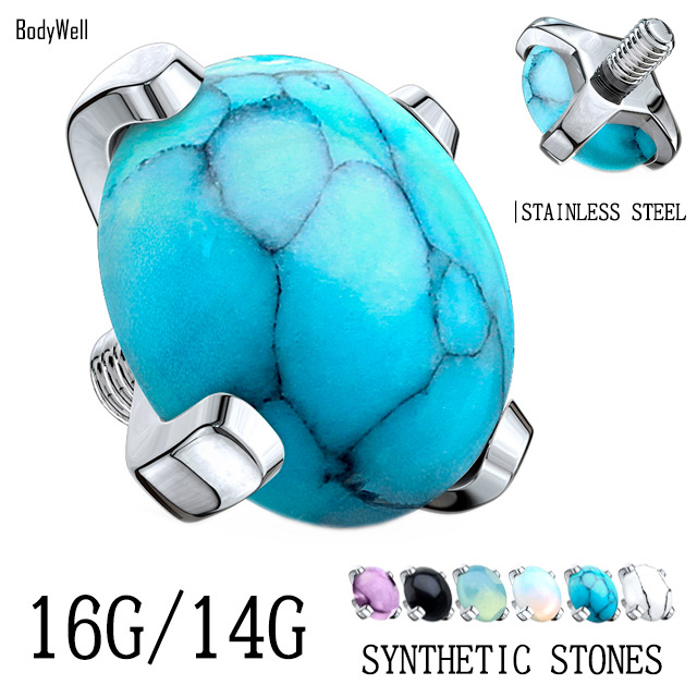 16G用 14G用 ※パーツのみ※ 全6色 シンセチック 天然石ピアス ロブ 軟骨ピアス ヘリックスピアス インターナルタイプ ボディピアス