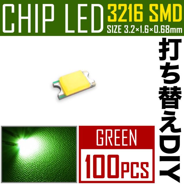 LEDチップ SMD 3216 (インチ表記1206) グリーン 緑発光 100個 打ち替え 打ち換え DIY 自作 エアコンパネル メーターパネル スイッチ