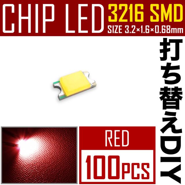 LEDチップ SMD 3216 (インチ表記1206) レッド 赤発光 100個 打ち替え 打ち換え DIY 自作 エアコンパネル メーターパネル スイッチ
