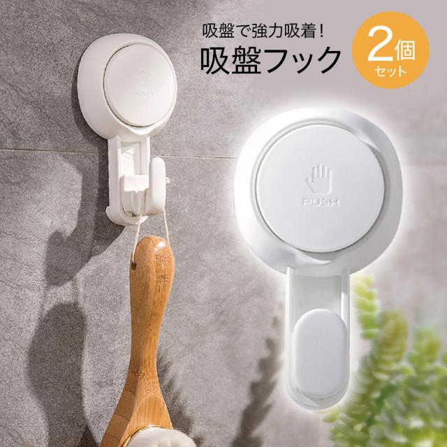 超強力 吸盤 フック 強力 2個セット プッシュ式 吸着 防水 kyuban-hook