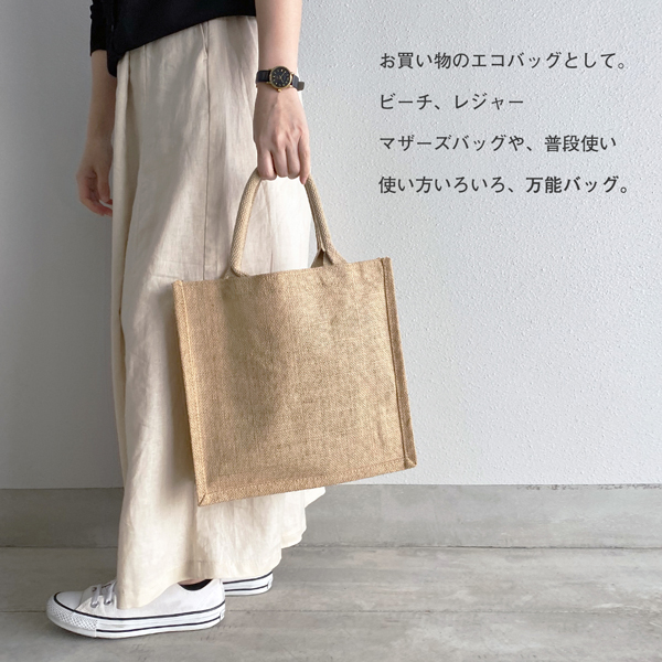 ジュートバッグ エコバッグ ジュート スクエア ナチュラル トートバッグ かごバッグ ハンドバッグ ママバッグ 買い物 バッグ レディース 人気 夏 BAG レジャー ショッピングバッグ レディースバッグ ビーチ 夏 バック