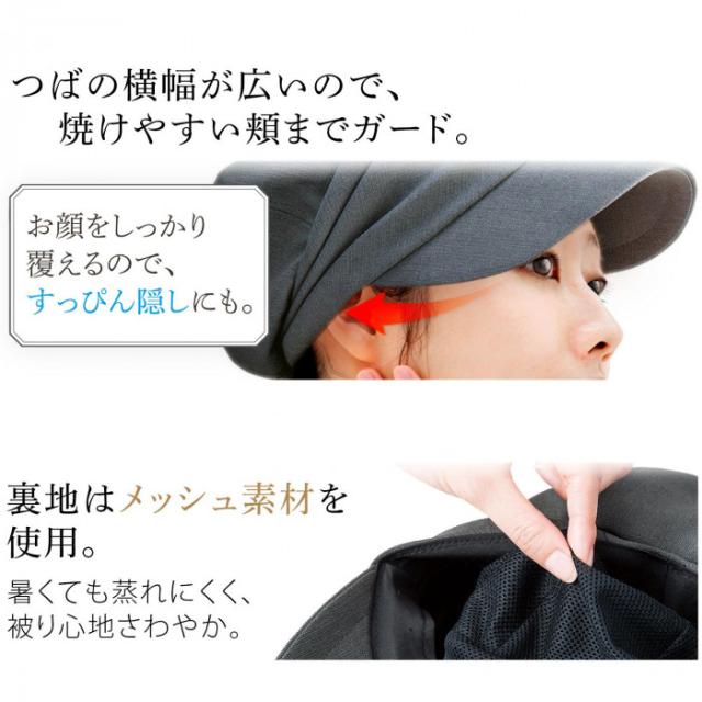お顔を守るキャスケット 紫外線99%カット グレー つば広