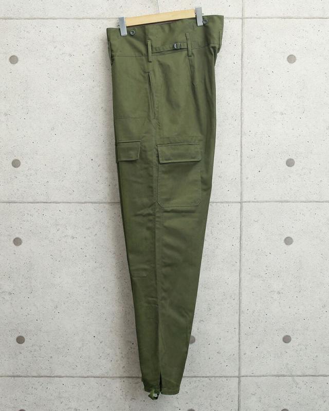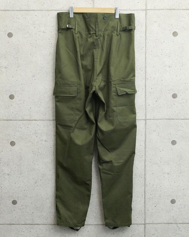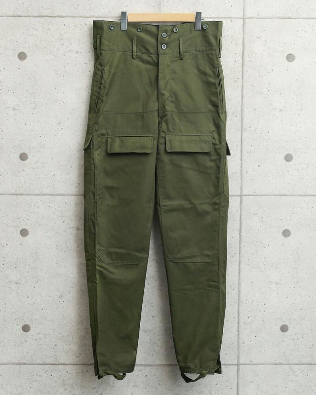 | 商品説明 | 実物 新品 デッドストック チェコ軍 M-85 ダブルニーフロント フィールド カーゴパンツのご紹介です。 チェコ軍より非常に独特なデザインのフィールドカーゴパンツが入荷しました! なんと言ってもフロントのフラップカーゴポケットが目をひくデザインで、バックポケットもフロントと同じ位置に配置されています。フロントカーゴポケットから膝部分までは2重に補強されたダブルニー仕様で戦場に耐えるように構築されたこだわり抜かれたディテールとなっています。 ハイウエストのデザインは体温を維持するのに役立ち、ウエストはアジャスターで調節可能、さらにサスペンダーボタンが付属していますので、サスペンダーを取り付けて雰囲気抜群のこなれた印象のスタイルでも着ていただけるカーゴパンツです。 ヘリンボーン素材のフィット感を高める足掛け付き、内側にライナーの取り付けなどが可能なボタン、フロントはボタンフライで見事なまでのヴィンテージディテールとなっています。 そのスタイリッシュな雰囲気は、さすがユーロミリタリーと思わせてくれるアイテムで、機能性は言うまでもなく、シルエット、着用感共に抜群で他とは違うおすすめの一品です。 | ||||||||||||||||||||||||||||||||||||||||||||||||||||||||||||