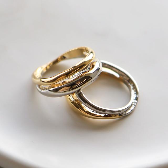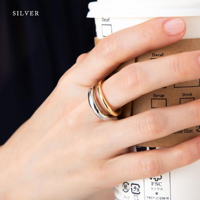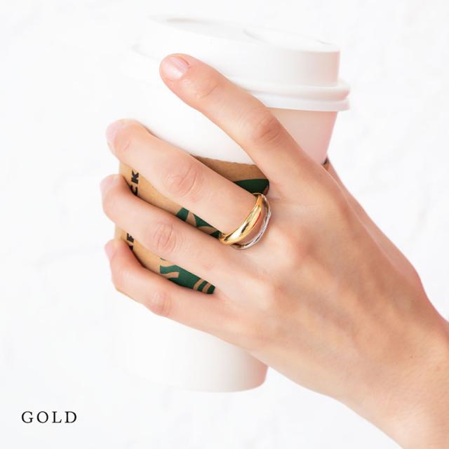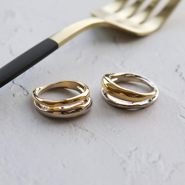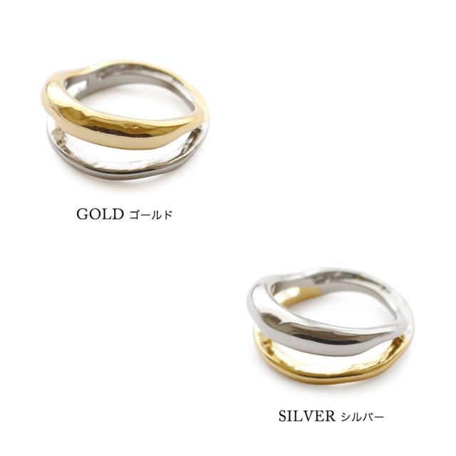 指輪 レディース リング 金属アレルギー 2連 13号 ミックス バイカラー ゴールド シルバー ニッケルフリー 安心 大ぶり ワイド 重ね付け 重ねづけ 重ね着け カジュアル トレンド 女性30代 40代 50代