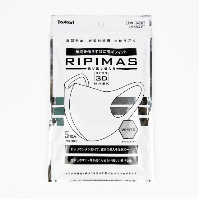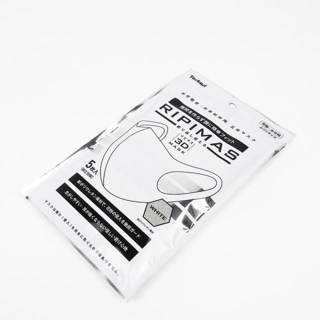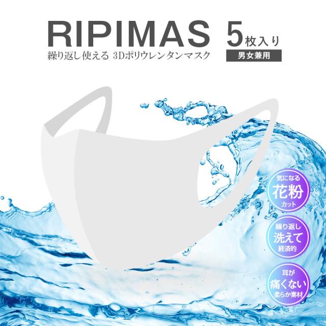 リピマス RIPIMAS 3Dポリウレタンマスク 5枚入 洗える 白 ホワイト 柔らか素材 長時間 耳が痛くなりにくい