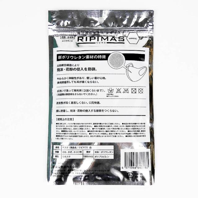 ポリウレタンマスク 5枚入 RIPIMAS リピマス 洗える 白 ホワイト 柔らか素材 長時間 耳が痛くなりにくい