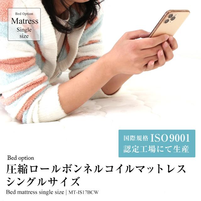 圧縮ロールボンネルコイルマットレス シングルベッド スプリングコイル 硬めの寝心地 省スペース 厚さ16.5cm 高反発マットレス JAJAN MT-IS17BCW
