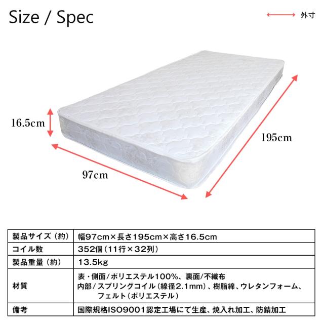 材質:表・側面/ポリエステル100%、裏/不織布、内部/コイルスプリング(線径2.1mm)、樹脂綿、ウレタンフォーム、フェルト(ポリエステル)