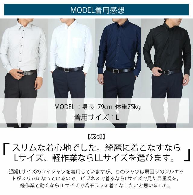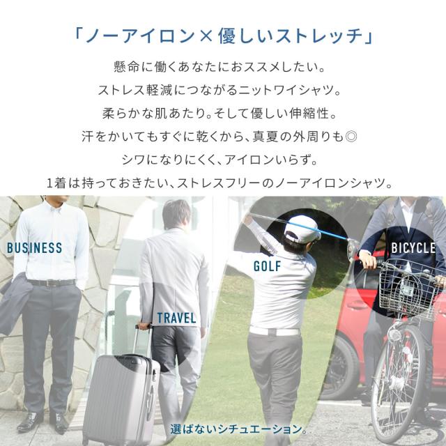 - 40代173センチ60キロ男、ビジネスで毎日スーツを着るためアイロンしなくて良いこちらのシャツMサイズを購入しました。生地はポロシャツの様な感じでシワにならず、着心地もとても良いです。パリッと着たい方...