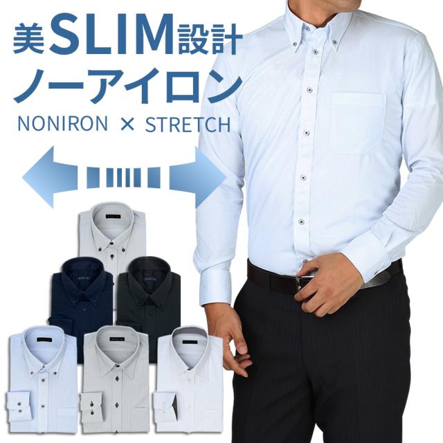 ワイシャツ ノーアイロン スリム ストレッチ 長袖 メンズ ニットシャツ 2枚は2通 メール便で送料無料 sun-ml-sbu-1788 形態安定 シャツ 白 青 ボタンダウン レギュラー襟 Yシャツ カッターシャツ ドレスシャツ ポロシャツ ビジネスシャツ 標準体 クールビズ