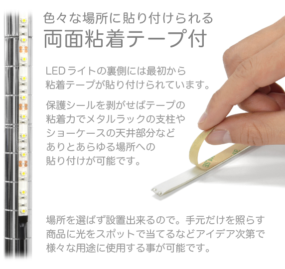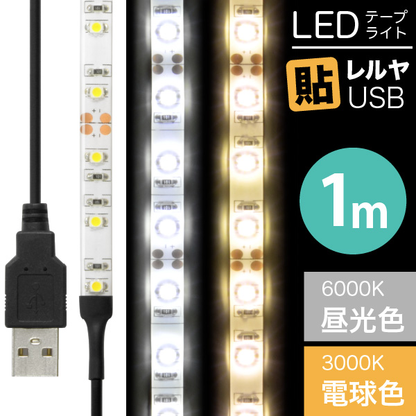 LED USB 照明 テープライト 貼レルヤ(昼光色/電球色 1m)60灯 貼り付けて使える粘着テープ付 ハサミでカットして長さの調節可能