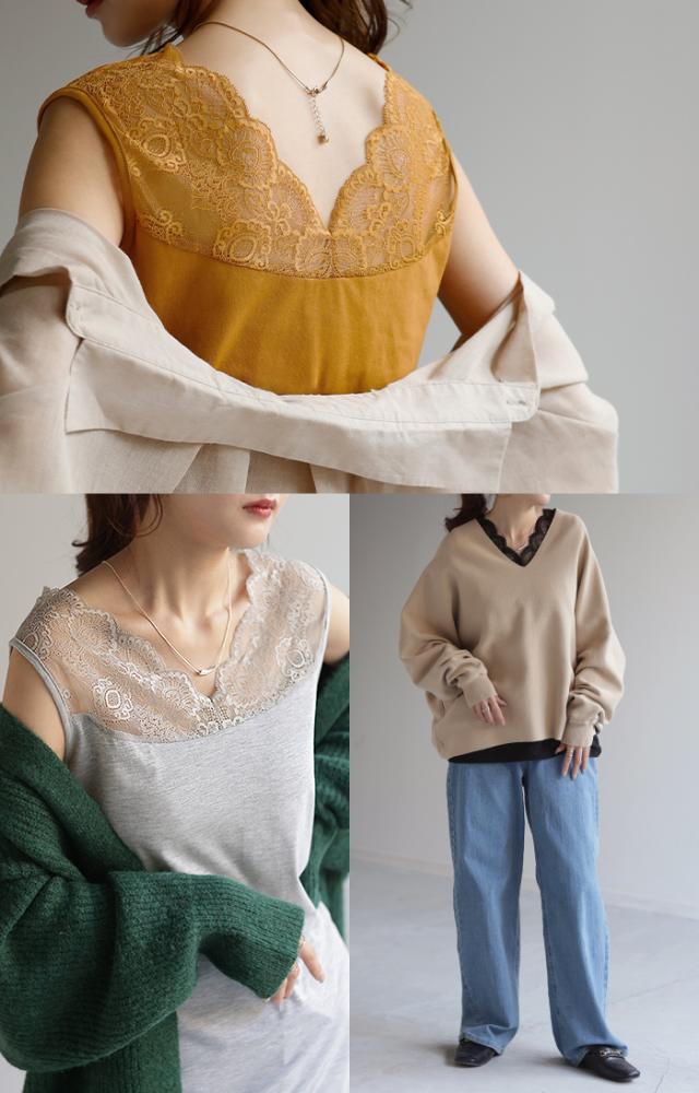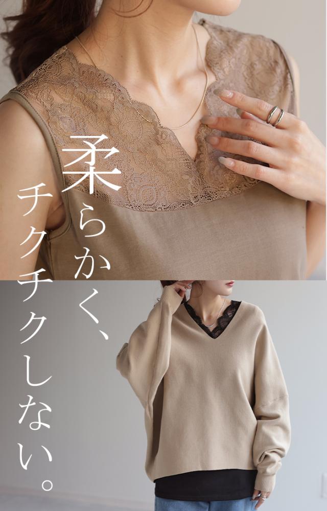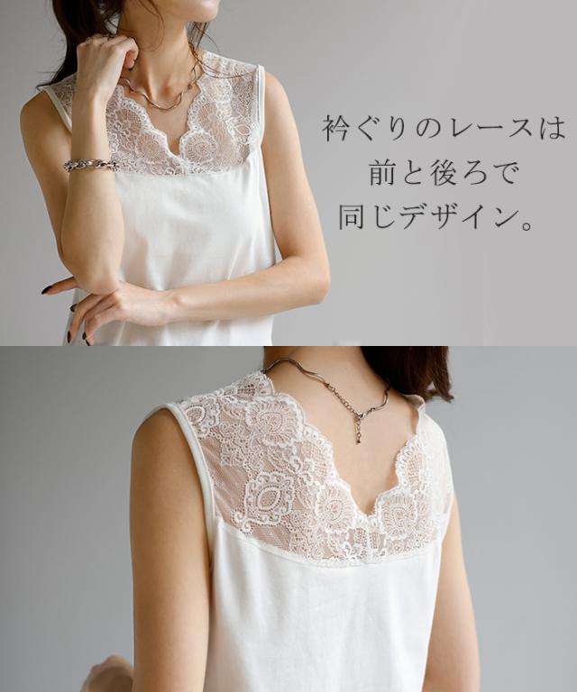 - 胸元や肩口が大きく開いている服の下に着るとレースの部分が見えて良い感じになります。丈も長めに取ってあるのでパンツの外に出して着るには良いです。 ただレースではない部分の生地が少し厚めなので夏場の重ね着...