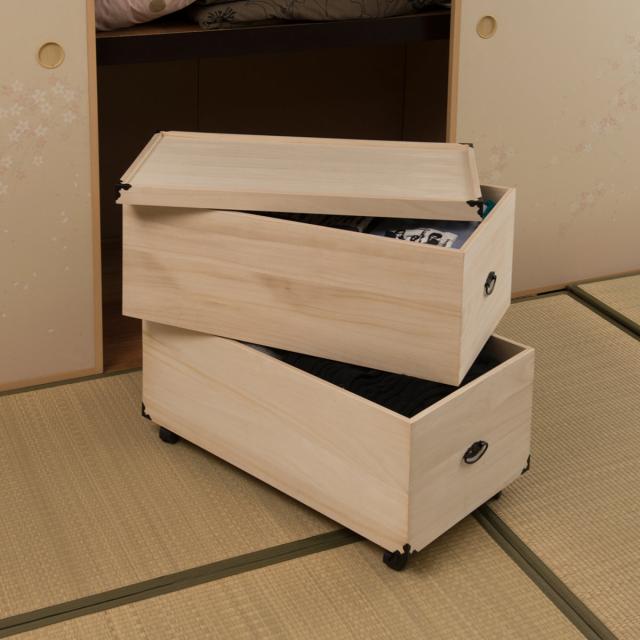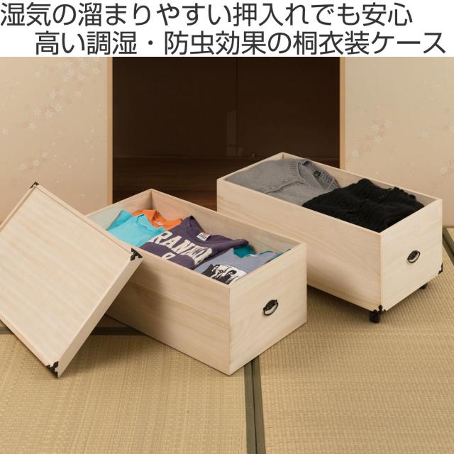 桐には防湿・防虫効果があり、内部を一定の湿度に保とうとする働きがあります。湿気の溜まりやすい押入れにも安心して収納することができる桐製の収納ケースは、冬物の洋服や毛布などの長期保管にもお使いいただけます。