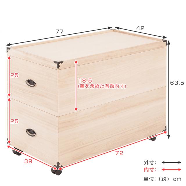 桐 衣装ケース 2段 押入れ収納 衣裳箱 キャスター付 隅金具 高さ63.5cm ( 桐衣装ケース 桐衣装箱 収納 ケース 衣装箱 衣類収納 桐製 木製 完成品 桐ケース 収納ケース 収納ボックス 蓋付き フタ付き 押し入れ収納 )
