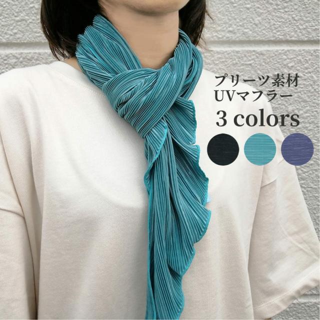 送料無料 メール便 サマー ストール UVマフラー ネック ショール プリーツ加工 無地カラー 光沢のある素材 ファッション 夏 おしゃれ ポスト投函