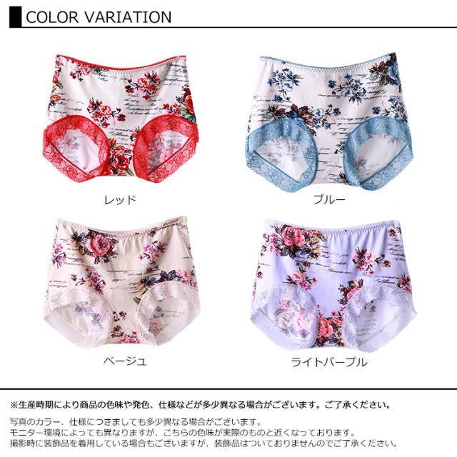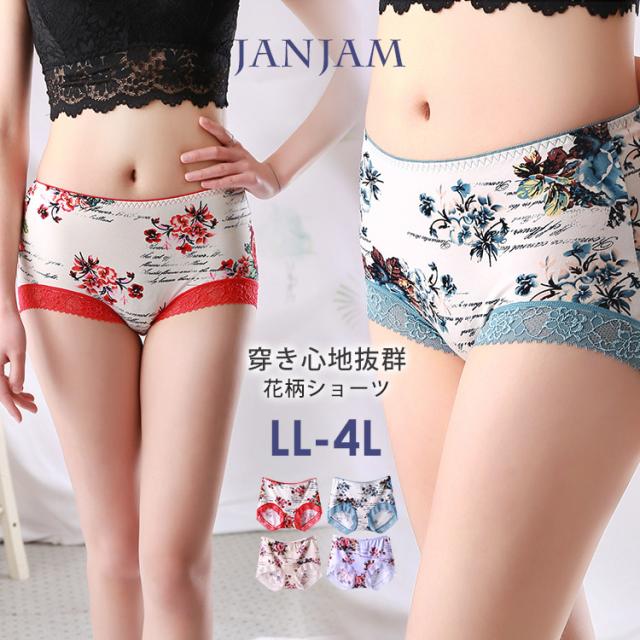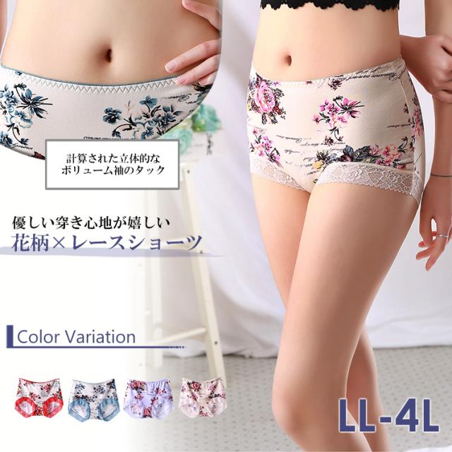 大きいサイズ レディース インナー ショーツ 花柄ショーツ 下着 花柄プリント 裾レース ストレッチ よく伸びる 伸縮 カラバリ豊富 スタンダードショーツ 深め パンティー ランジェリー 普段使い デイリー 大人 きれいめ かわいい 女性用 婦人用 30代 40代 50代 紫 青 赤 肌色 春 夏 秋 冬 LL 3L 4L 13号 15号 17号 ec-all-in0082