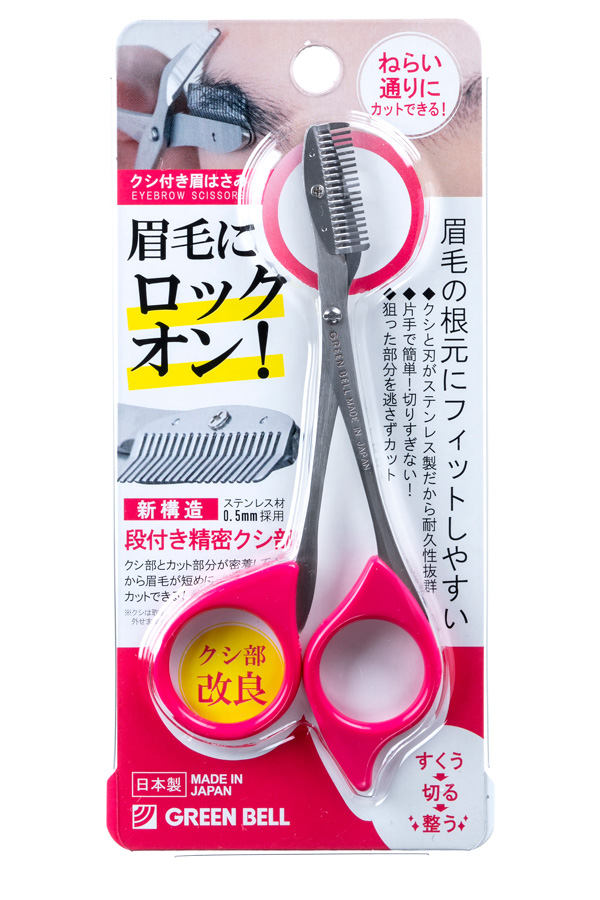 【送料無料】グリーンベル 眉毛にロックオン 眉はさみ「ステンレス製クシ付き眉はさみ ピンク MI-248」