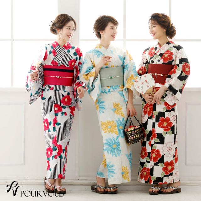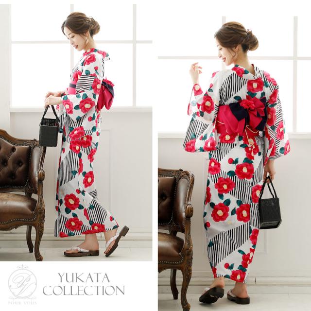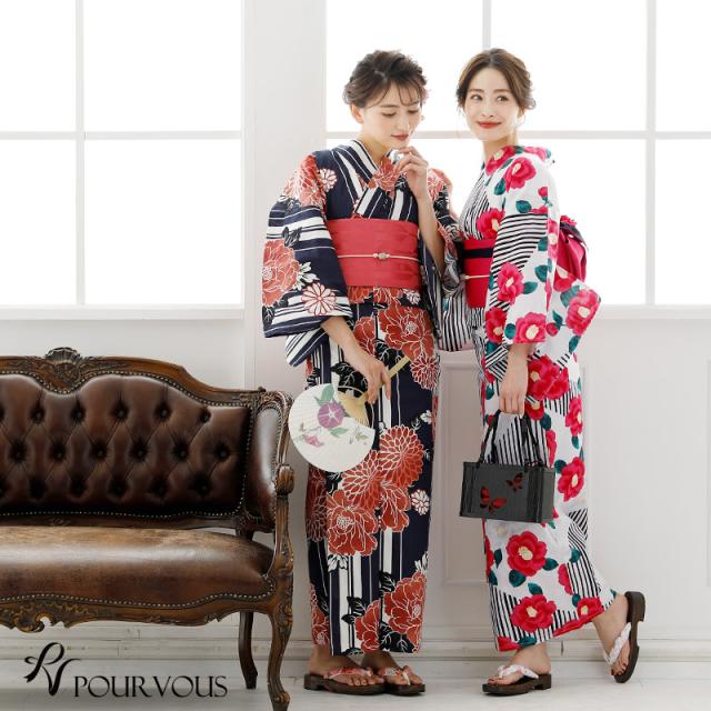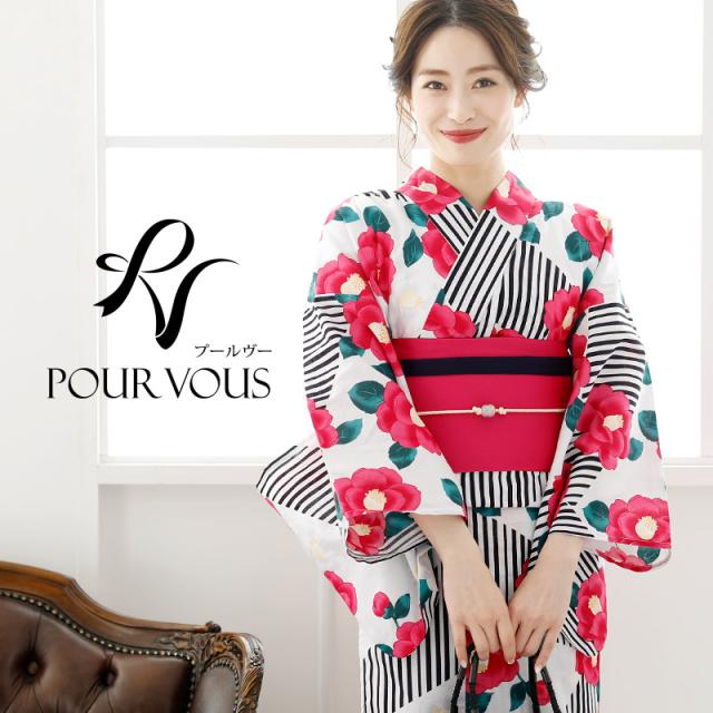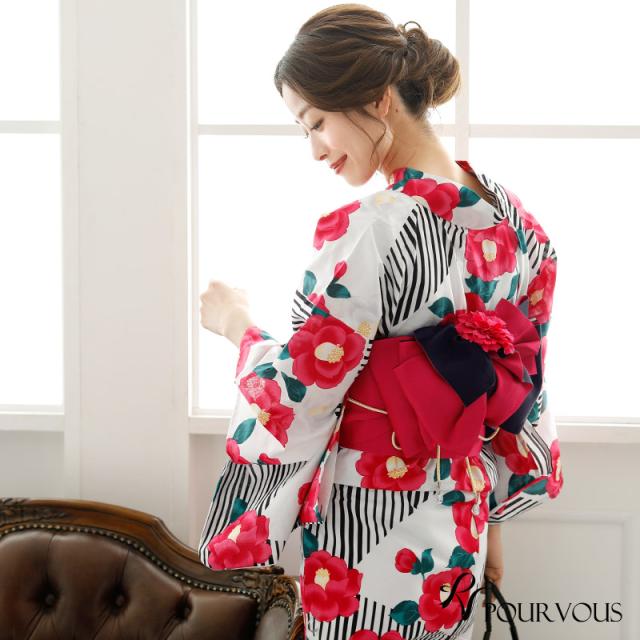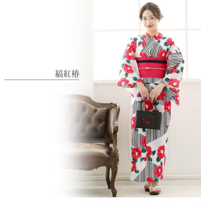 椿が美しく咲き誇る品のある大人可愛い浴衣デザインです。