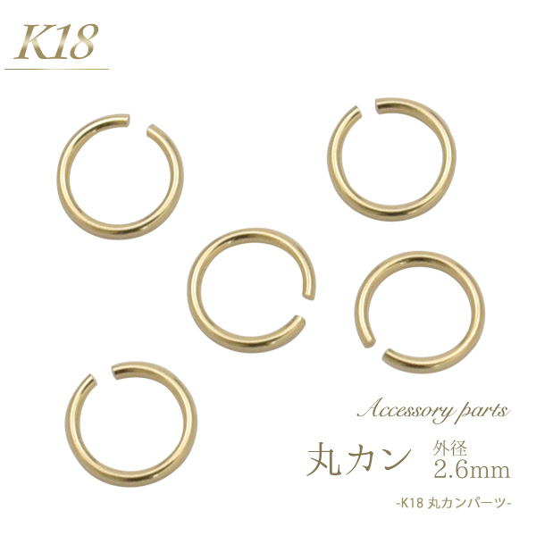 丸カン 2.6mm K18 金18 アクセサリーパーツ 1個売り 単品 修理 手作りアクセサリー ハンドメイド パーツ 素材 つなげる 部品 金具 18金 手作りピアス カン 18k ネックレス ブレスレット ピアス DIY 手芸 手芸国産 日本製