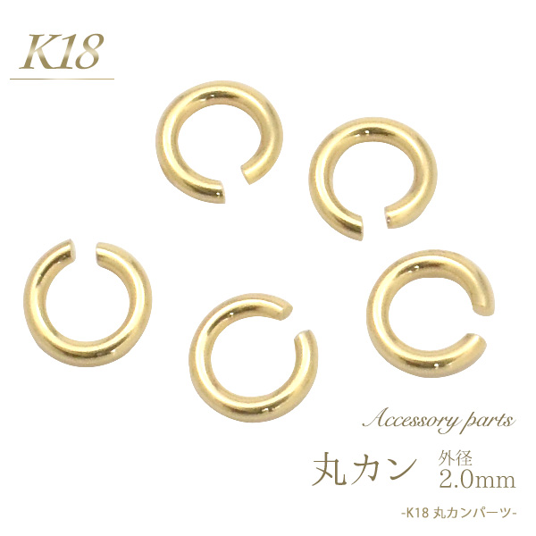 丸カン 2.0mm K18 金18 アクセサリーパーツ 1個売り 単品 修理 手作りアクセサリー ハンドメイド パーツ 素材 つなげる 部品 金具 18金 手作りピアス カン 18k ネックレス ブレスレット ピアス DIY 手芸 手芸国産 日本製