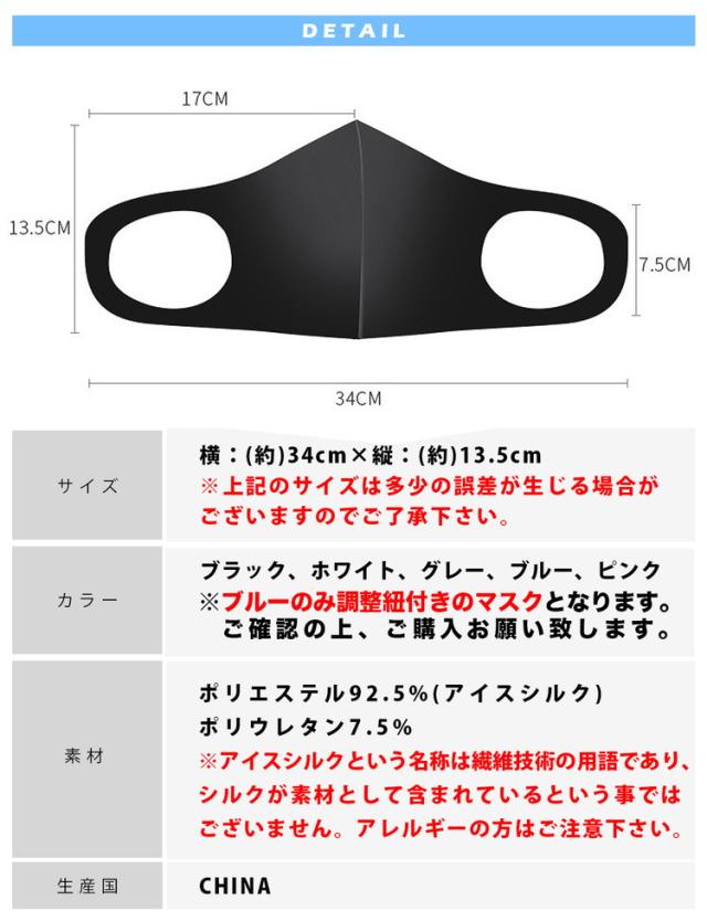 ※ブルーのみ調整紐付きのマスクとなります。