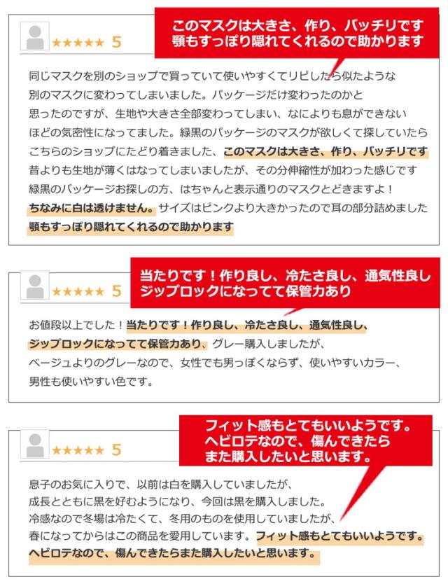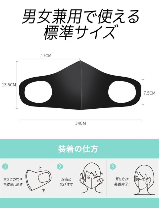 - メンズと書いていながらサイズの表記が全くなく、試しに買ってみたらパッツパツで普通のマスクよりも息苦しいというクソでしかありませんでした