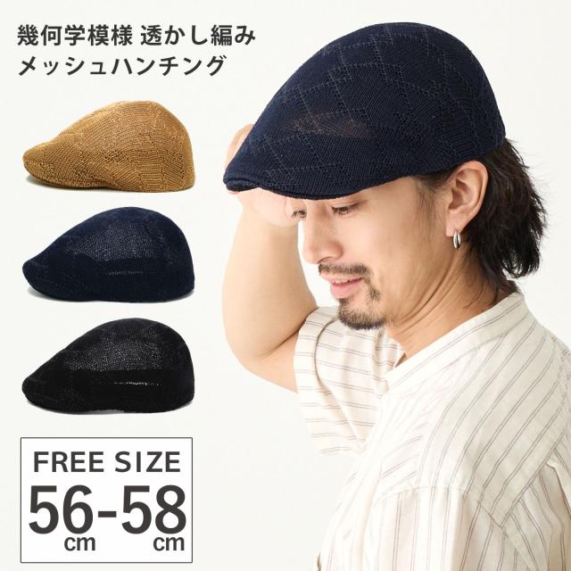 ハンチング 帽子 透かし編み 軽くて涼しい 蒸れない オールメッシュ 夏用 メンズ 56-58cm 通気性抜群 hun-621 サーモ ハンチング帽 春夏 UV 風通し サイズ調節 形状記憶 暑さ対策 お洒落 渋い カッコいい お父さん シニア プレゼント 即納
