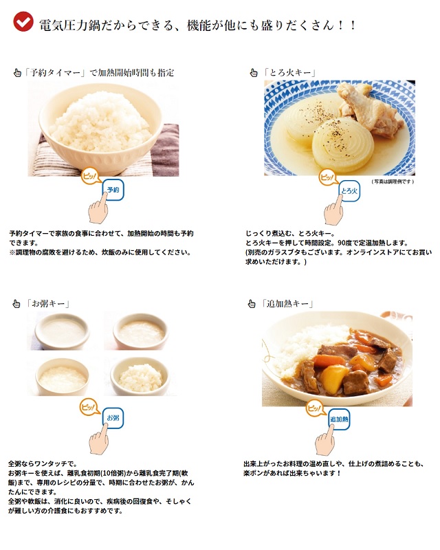 ●火を使わない電気圧力鍋なので高齢者にも安心簡単