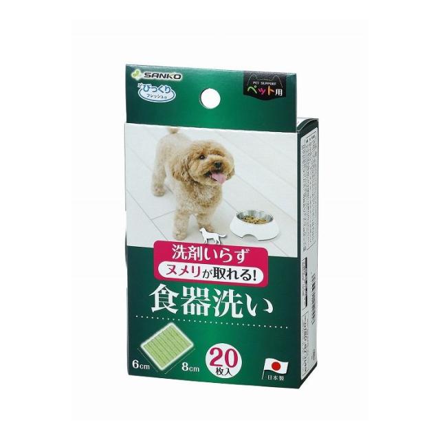 サンコー ペット用食器洗い20枚入 GR グリーン 緑 犬 猫 イヌ ネコ 使い捨て 食器洗い