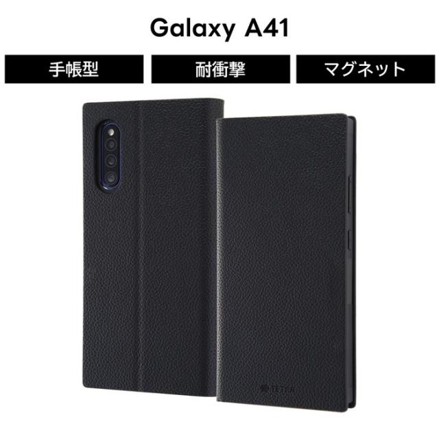 Galaxy A41 ケース 手帳型 マグネット 黒 docomo SC 41A au SCV48 レザー ブラック シンプル 耐衝撃 ICカードポケット ギャラクシー エー フォーティーワン 手帳型ケース ソフト ハード スマホケース カード収納