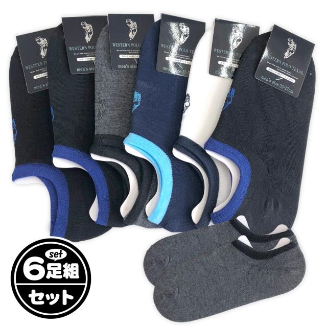 【送料無料】6足組セット メンズ 紳士 無地 ロゴ すべり止め付き ショート丈 スニーカー丈 ソックス 靴下 25-27cm sp-0071【メール便対応】