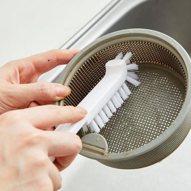 ●ブラシの先端が直角になっているので、排水口やストレーナー、三角コーナー等の側面や底面にフィットして汚れを落とします。