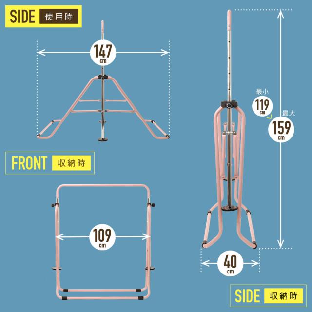 使わない時は、簡単に折りたたんで収納ができ、布団干し、洗濯干し、洋服ラックにも使えそうです。