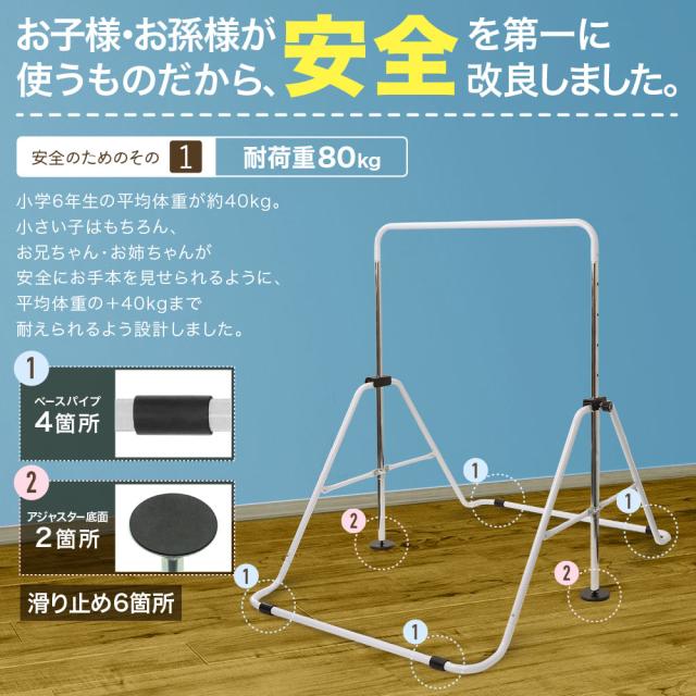 鉄棒 室内 屋外 【 耐荷重80kg 成長に合わせて高さ調節可能 】 子供 キッズ 折りたたみ 室内 屋外 こども 鉄棒練習 体育 運動 てつぼう テツボウ
