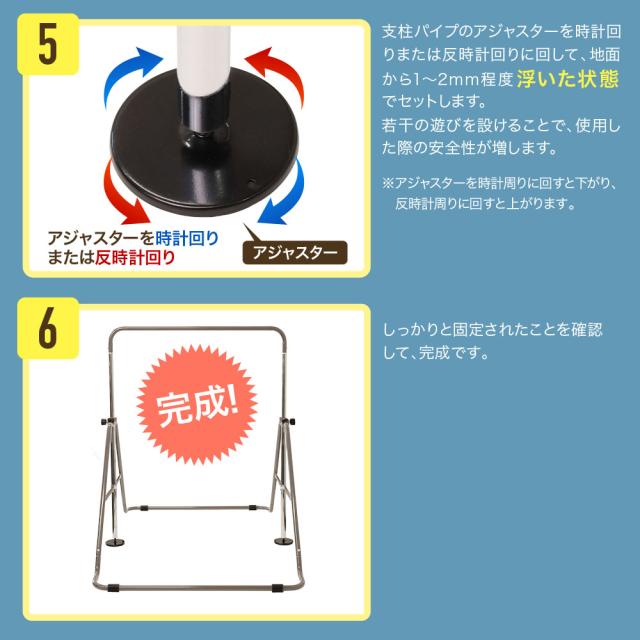 ●必ず、アジャスターは、床パイプより長く調節しないでください。