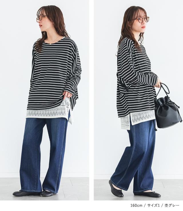 | 「ぽっちゃりさん」 163cm/65kg B104 W87 H105 普段はL またはLLサイズ着用。 | 【2(LL〜3L)】 ◆着丈(後) :ヒップが隠れる位 ゆるっとリラックス感をもって着られました♪ |