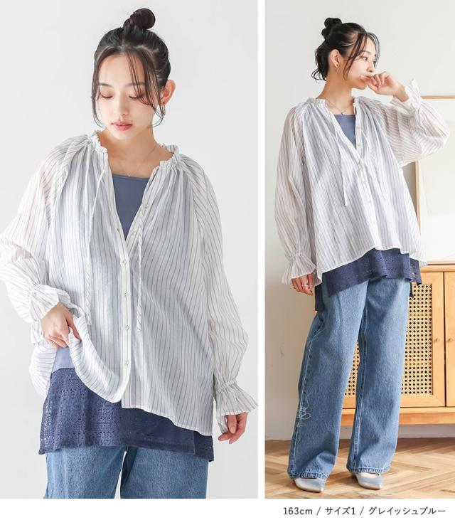 | 「標準さん」 157cm/51kg B85 W69 H89 普段はM またはLサイズ着用。 | 【1(M〜L)】 ◆着丈(後) :ヒップがすっぽり隠れる位 【2(LL〜3L)】 ◆着丈(後) :ヒップ下3cm位 1(M〜L)は、程よいサイズ感で着られました。2(LL〜3L)は大きすぎることなく、ゆったりと着られました。 |