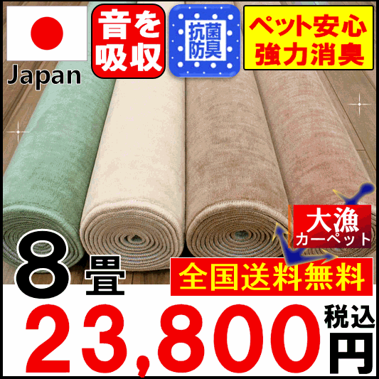 国産 ペットも安心 強力消臭 カーペット【エミリス】8畳(352×352cm)