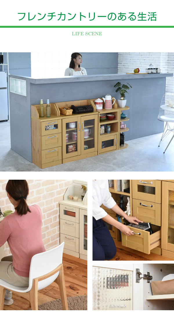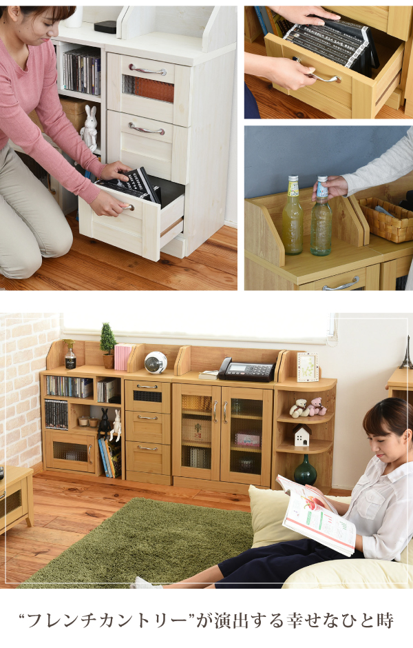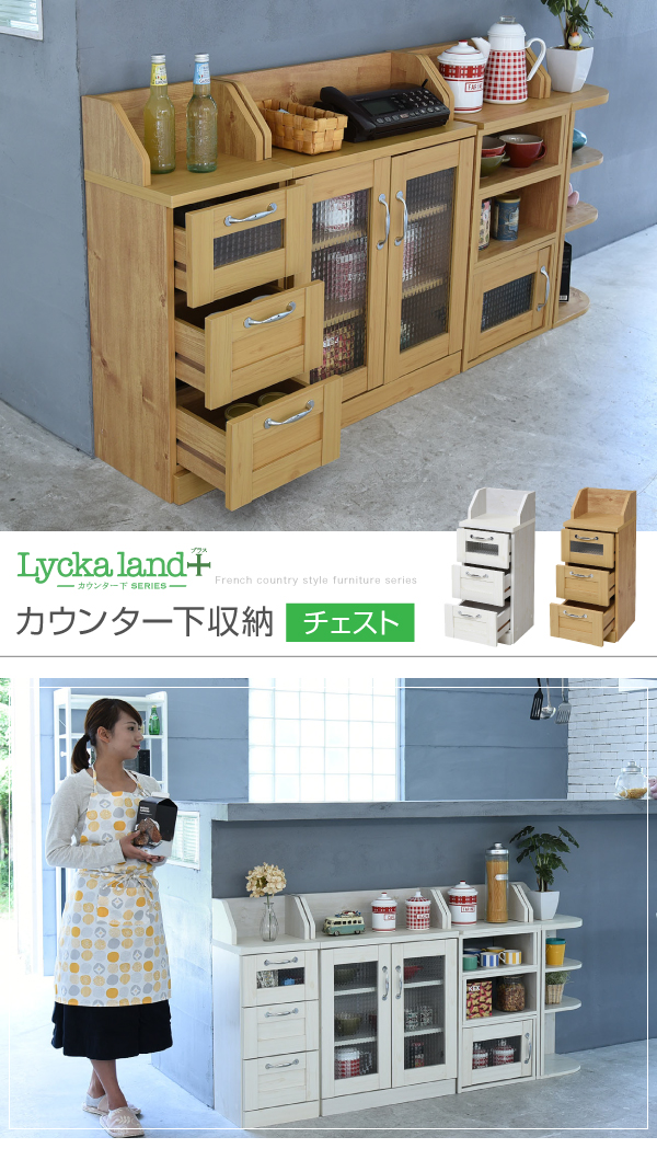 フレンチカントリー家具 カウンター下収納 チェスト 幅30 FLL-0017 キッチン収納 引き出し リビングラック キッチンカウンター 収納棚 ローチェスト カントリー調 ホワイト ナチュラル