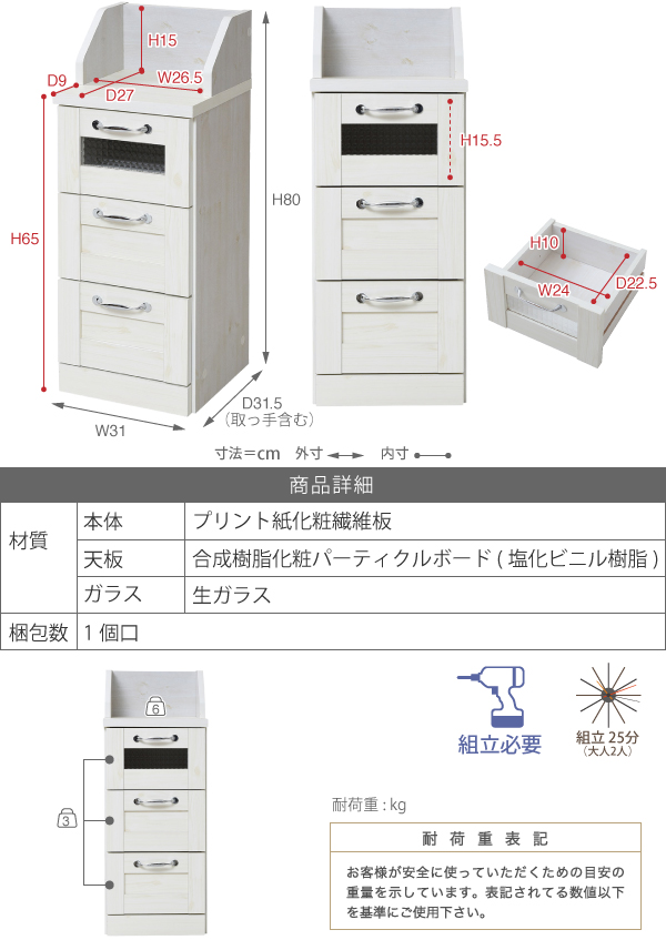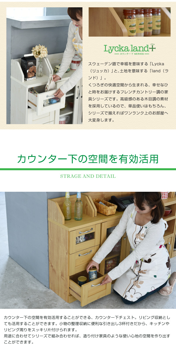 フレンチカントリー家具 カウンター下収納 チェスト 幅30 FLL-0017 キッチン収納 引き出し リビングラック キッチンカウンター 収納棚 ローチェスト カントリー調 ホワイト ナチュラル