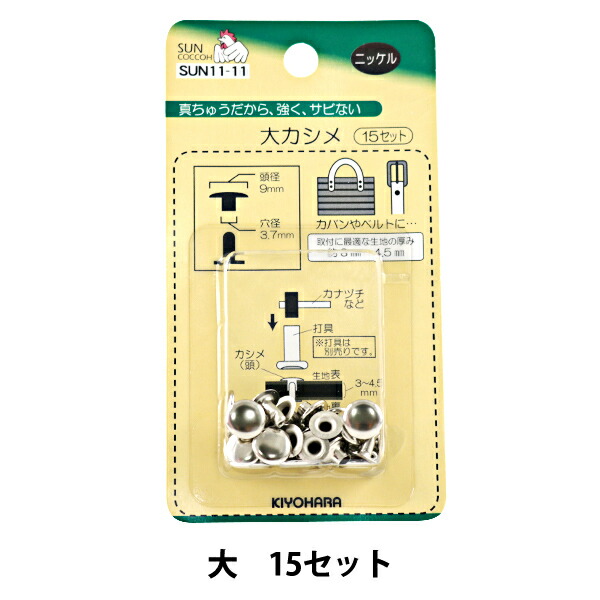 手芸金具 『大カシメ ニッケル SUN11-11』 SUNCOCCOH サンコッコー KIYOHARA 清原