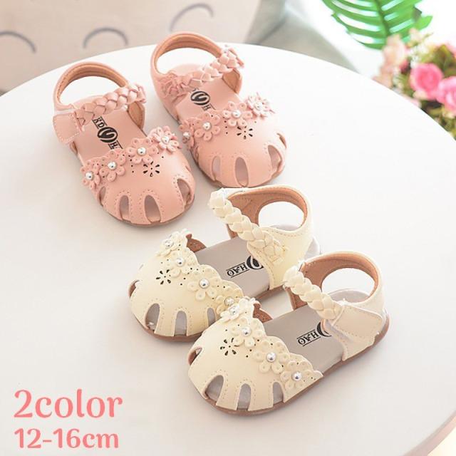 ベビー キッズ ベビーシューズ サンダル ストラップ付きサンダル 編み込み つま先保護 花 フラワー かわいい お出かけ 夏 サ