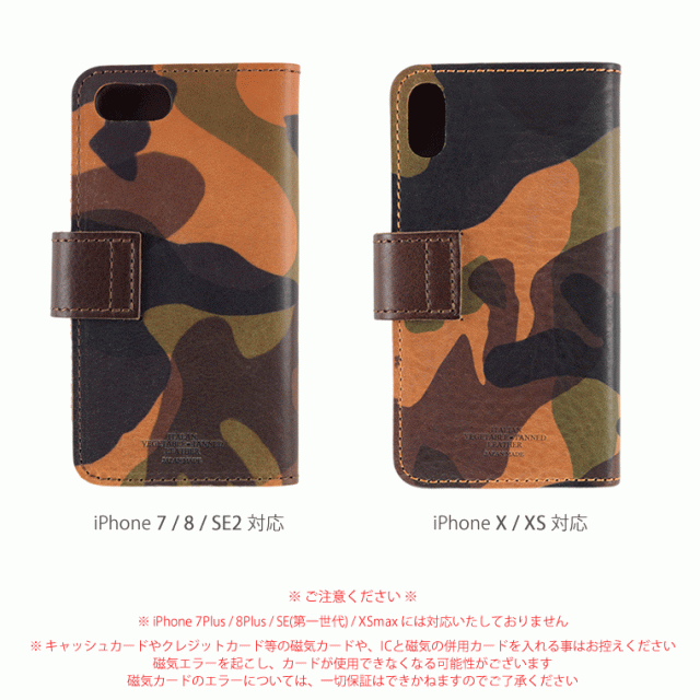 イタリアンレザー iPhone 7 8 SE2 X XS SE3 フリップカバー アイホン アイフォン 革 本革 レザー ユニセックス イタリアレザー フルカバー ケース iPhoneカバー iPhoneケース カード入れ 手帳型 大人 iPhoneSE2 iPhoneX iPhoneXS 迷彩柄 手帳型ケース iphone