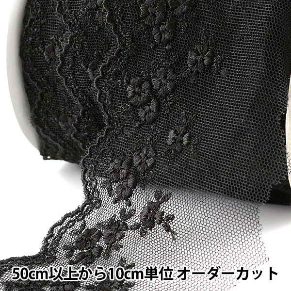 【数量5から】 レースリボンテープ 『チュールレース 黒 幅約65mm 24112-19』