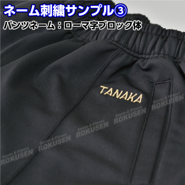ネーム位置はジャケットの胸または左袖、パンツの左腰です。