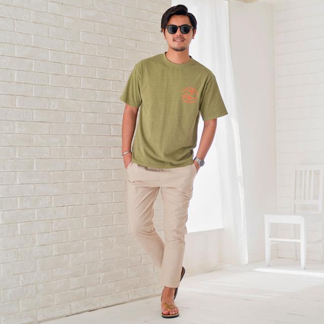 イージーパンツはもちろん、ショートパンツと合わせて夏らしく爽やかなスタイリングもオススメ。