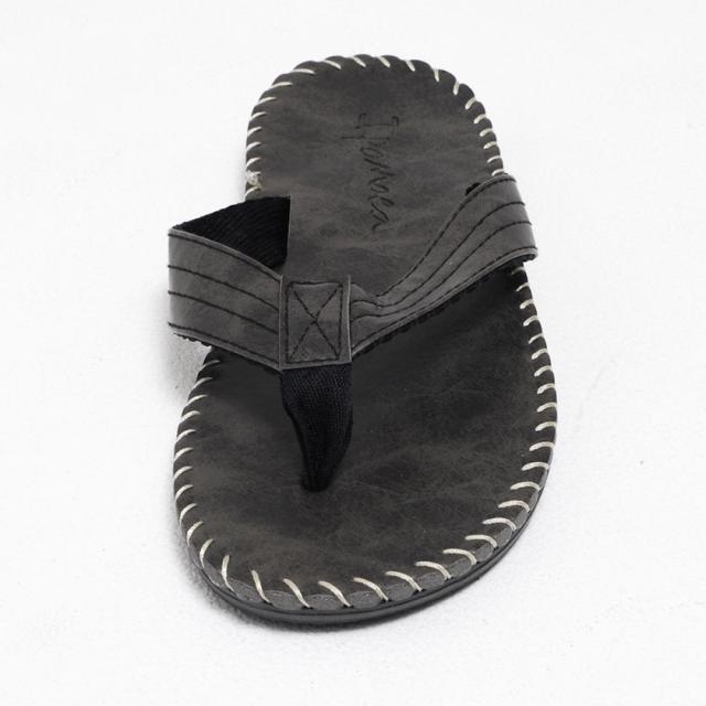 足の親指と人差し指で鼻緒を挟む形状のトングサンダルは脱ぎ履きがしやすくラフな履き心地が魅力。