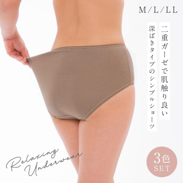 【3枚セット】 ショーツ 綿100% レディース セット 綿 インナー 敏感肌 肌に優しい 深履き 深ばき 股上深め 深め おへそまで 綿ガーゼすっぽりショーツ 3色組