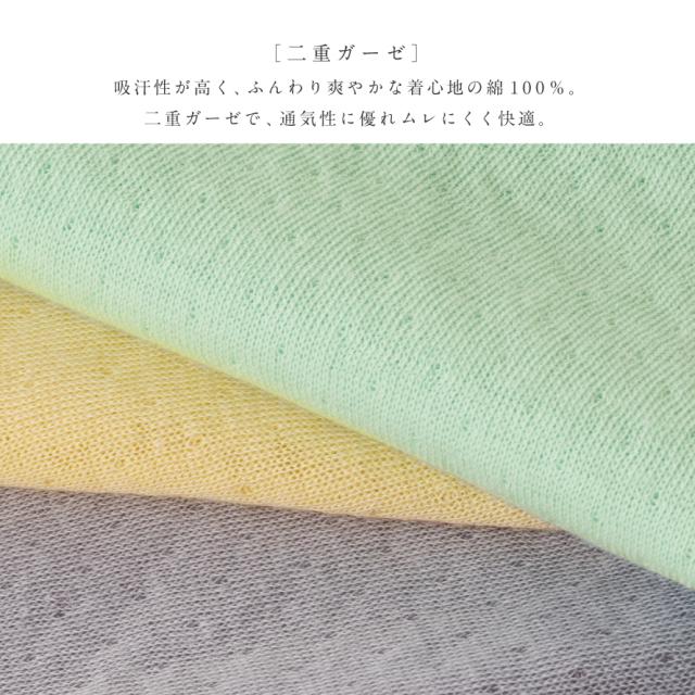 二重ガーゼで、通気性に優れ、ムレにくく快適。